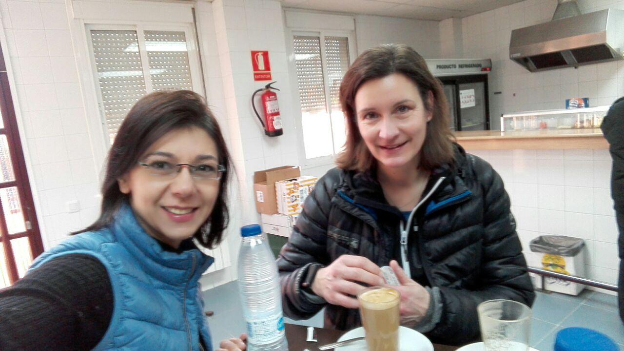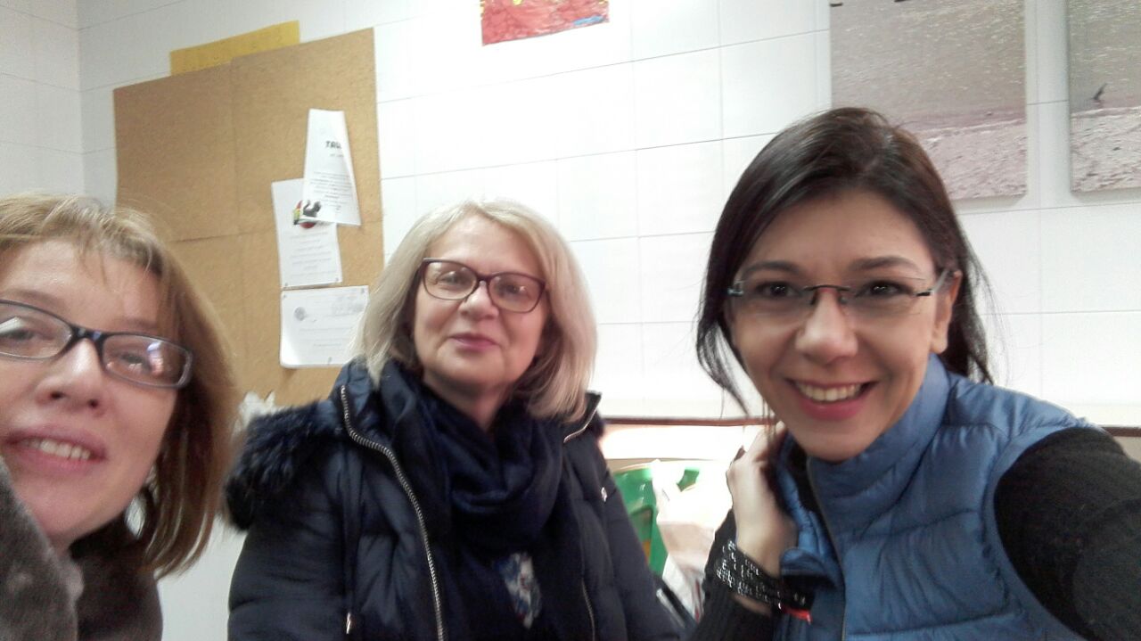 Teachers from Germany and Spain after the celebrations ob our last day in Valmojado: from left: Sandra from Spain, Sandra from Germany, Hatice Zehra from Germany and Eva from Spain.